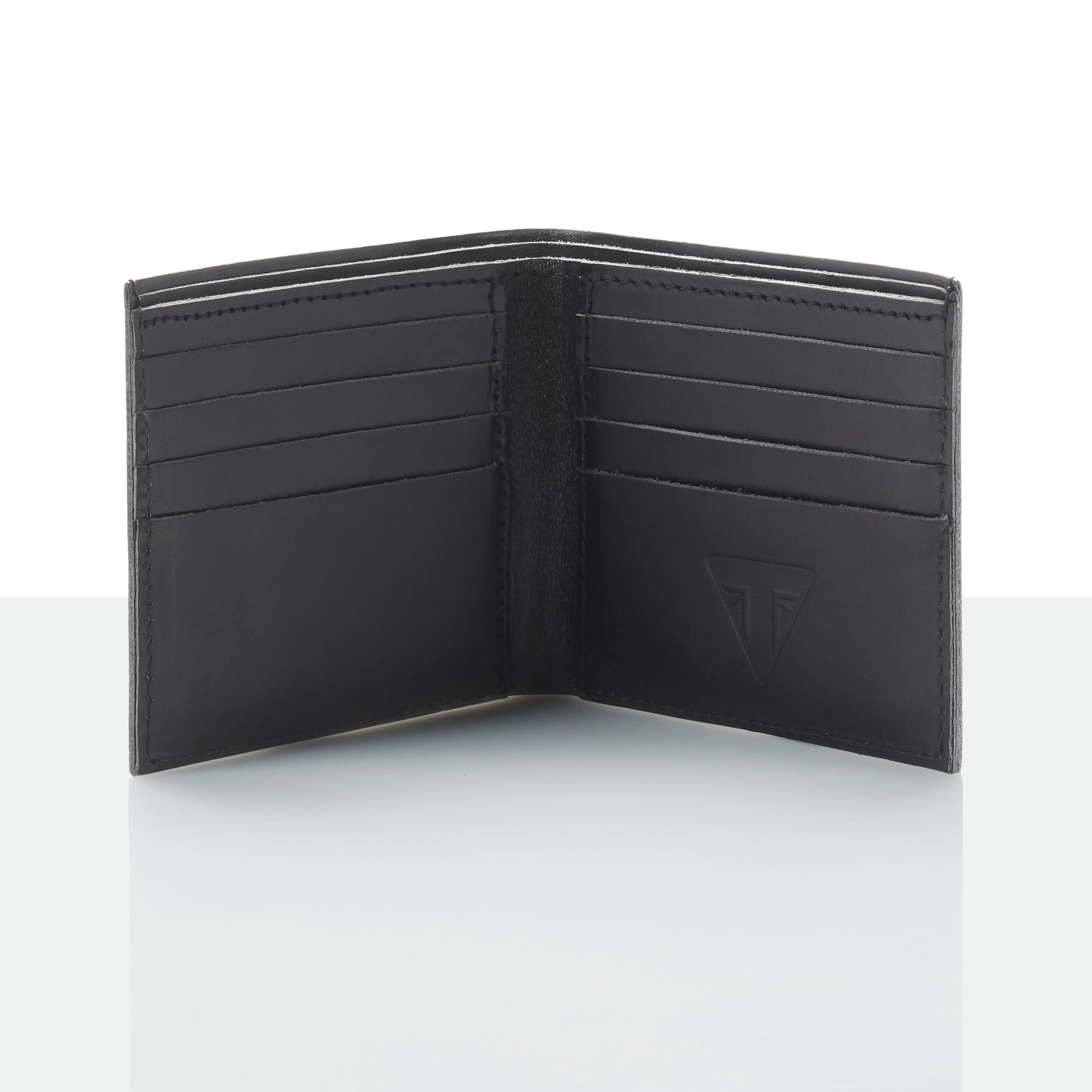 Cartera de cuero plegable de Triumph, diseñada para durar. Con diez ranuras para tarjetas, dos para billetes y un cierre de cremallera seguro. Hecha a mano en Portugal con cuero bovino italiano de alta calidad y acabado suave.