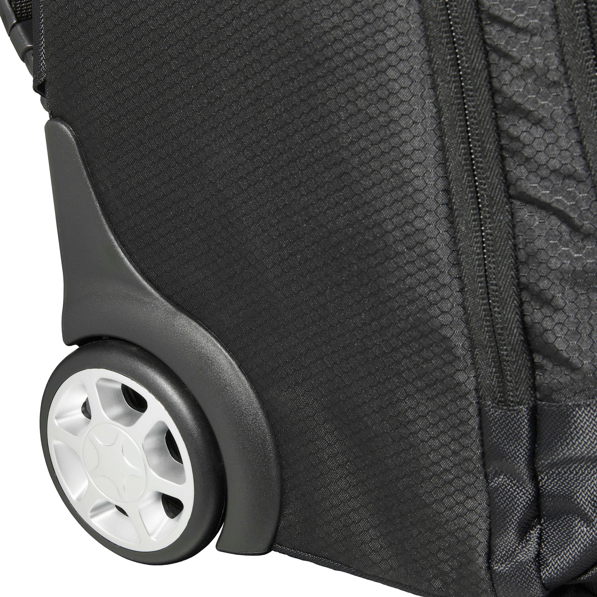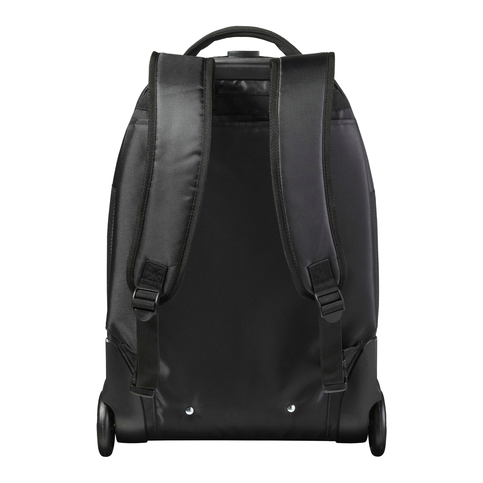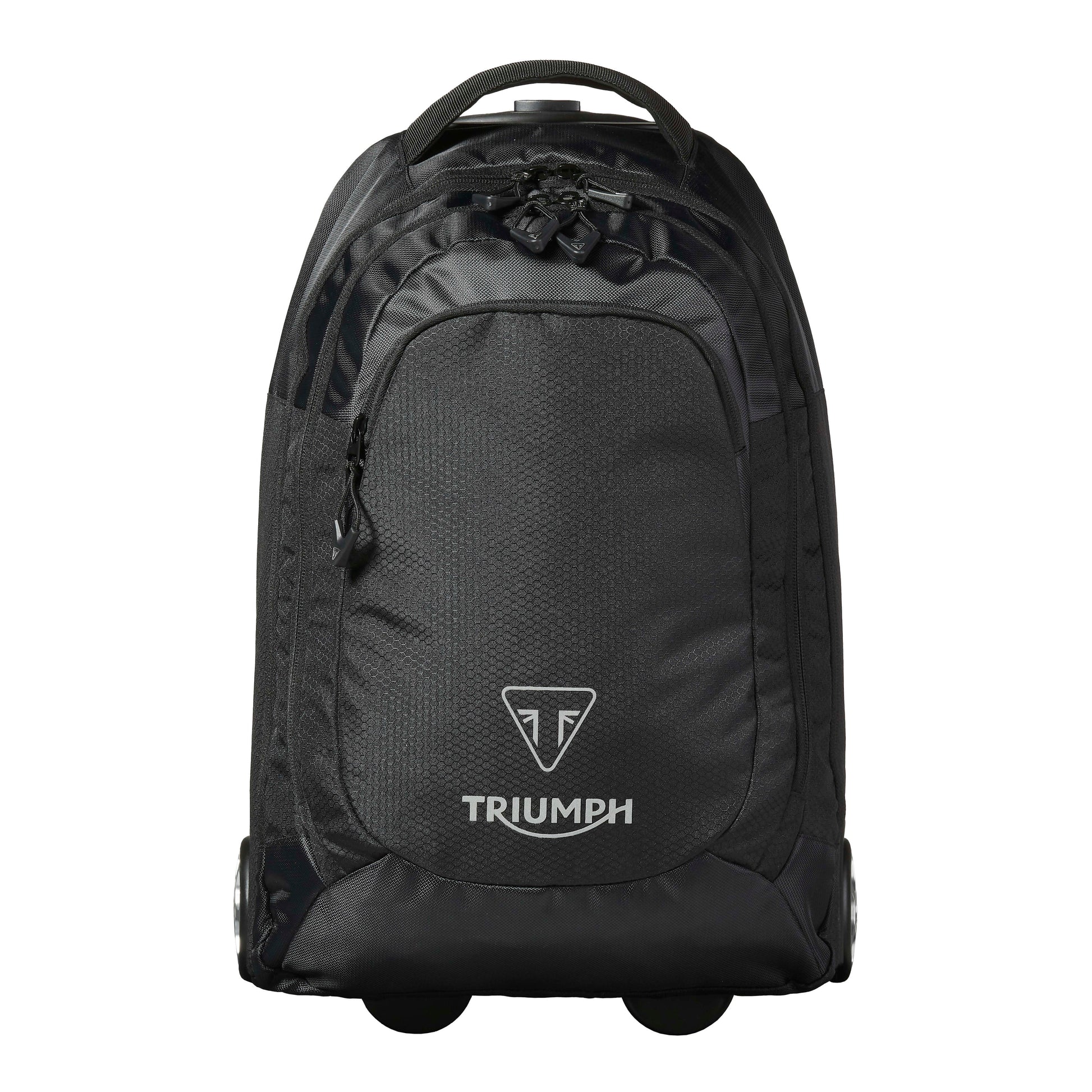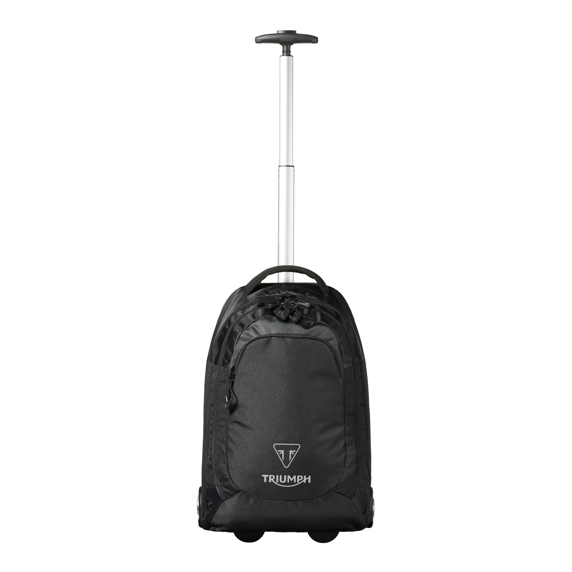 La Mochila Roll-On de Triumph es ideal para escapadas de fin de semana, viajes de negocios o desplazamientos diarios. Fabricada con poliéster 600D y tejido rip-stop hexagonal, ofrece resistencia al agua. Incluye un asa telescópica, correas acolchadas, compartimentos espaciosos y ruedas robustas para facilitar el transporte.
