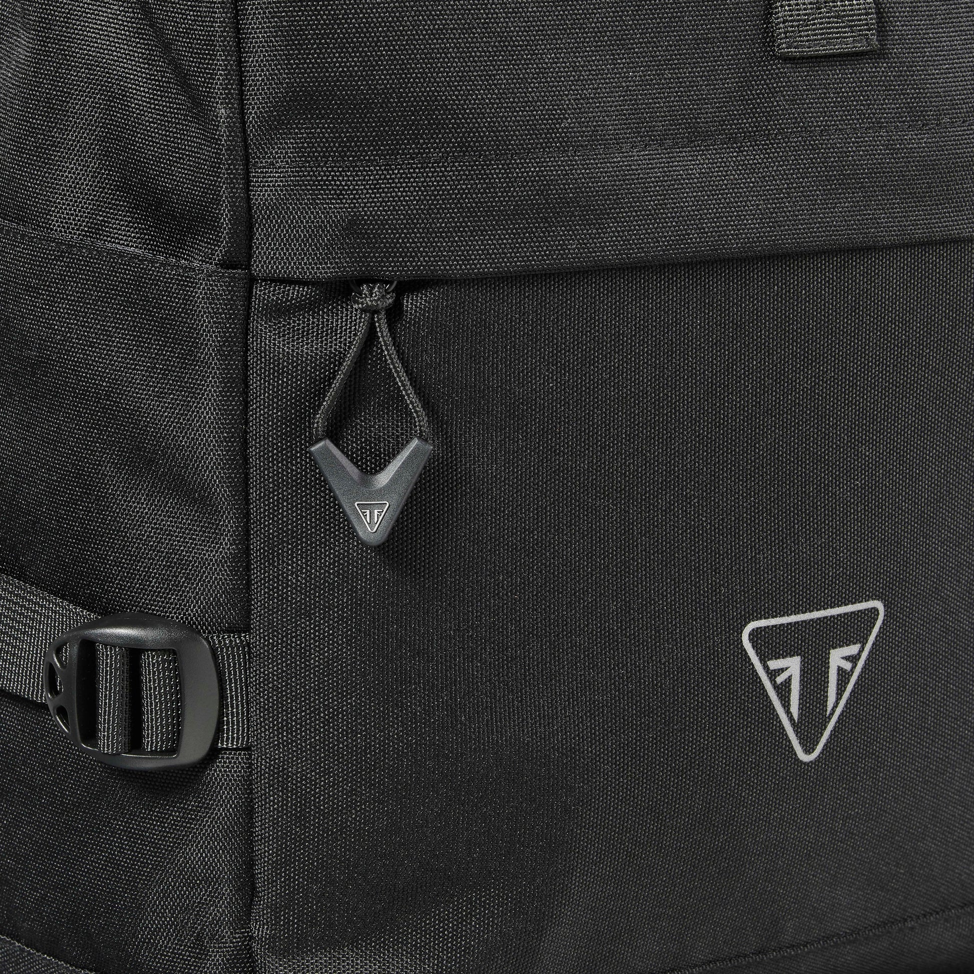 La Mochila Roll-Top Clásica Moderna de Triumph está diseñada para satisfacer las demandas de los motociclistas clásicos modernos. Con cierre seguro de rollo, compartimento interno acolchado para portátil, y correas ajustables, ofrece comodidad y practicidad. Su construcción de poliéster 600D protege contra la lluvia, mientras que el sistema de flujo de aire reduce el calor y la transpiración.